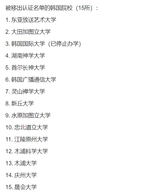 近日,中国教育部留学服务中心(中留服)更新韩国、俄罗斯高校认证名单。15所韩国大学和11所俄罗斯大学被移出认证名单,学历将不再获国内官方认证,可能影响留学生回国就业、考公、落户等权益。