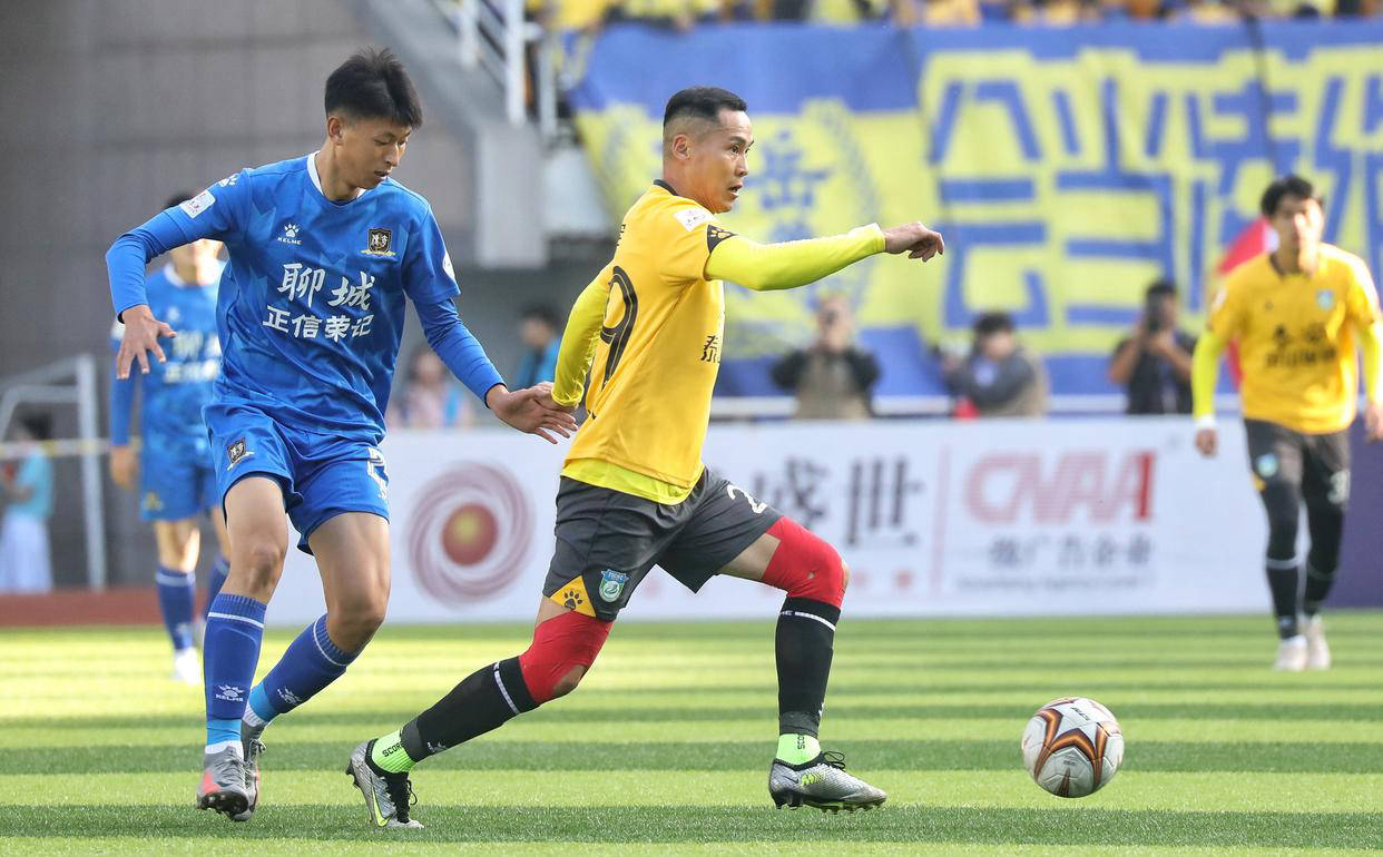 比赛进行到第16分钟,泰山城建制造出威胁,安凯尔送出直传,刘博射门被挡,随后皮球被再次挡出。第24分钟,聊城通过连续配合制造威胁,但李景承宇及时做出关键封堵。不久之后,应伟杰传中,靳辉头球攻门被扑出。第40分钟,聊城射门被张家豪飞身扑出。上半场战罢,双方0比0平局。