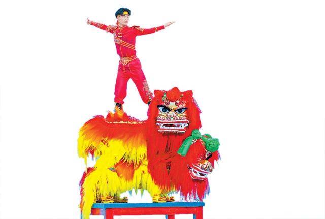 除两只狮子外,每支队伍还有一名“引狮员”,他不仅要引导狮子的动作,还要独立完成翻跟头等难度动作。