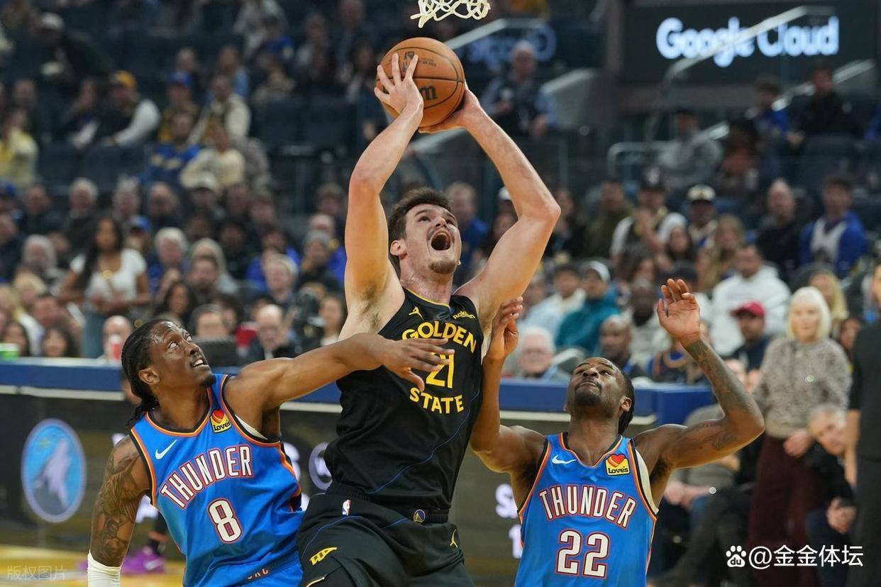 次节初段,勇士一度让人看到希望。 桑托斯和戴维斯带队打出一波13-4的攻势,分差追到只剩5分。 可这缕微光转瞬即逝。 亚历山大重新登场,雷霆瞬间开启“屠杀模式”——霍姆格伦内线攻击波直接把分差拉开到20分以上。 半场结束时,勇士45-64落后,比赛几乎失去悬念。