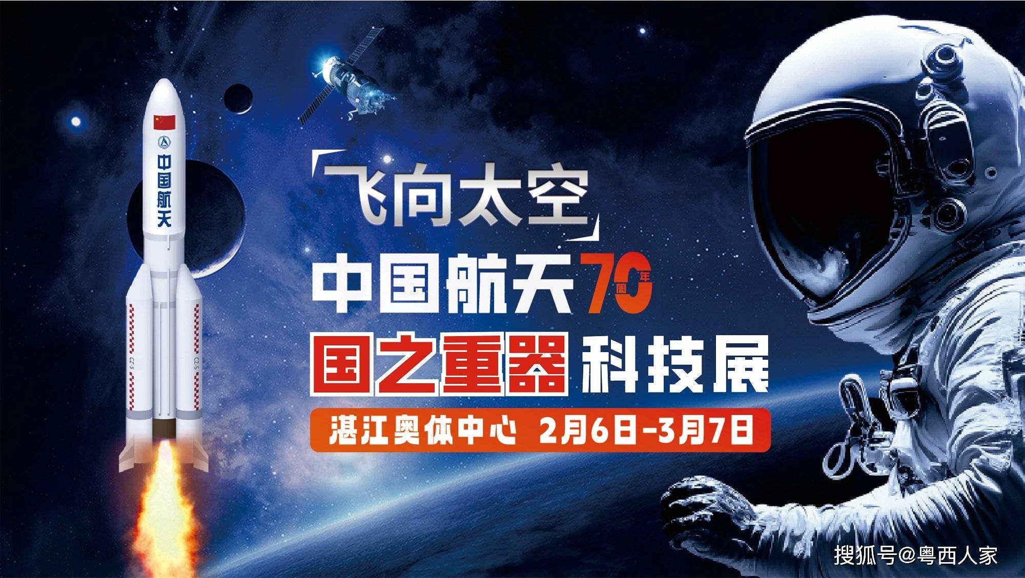 2026年是中国航天事业发展70周年,亦是贯彻落实党的二十届四中全会精神开局之年、实现建军一百年奋斗目标攻坚冲刺之年。值此辞旧迎新、万象更新之际,“飞向太空—中国航天70周年国之重器科技展(湛江)”将于2月6日至3月7日在湛江市奥林匹克体育中心综合训练馆重磅开展。展会联动“来湛江过大年”主题活动,将为市民游客献上“国之重器+新春年味”的双重盛宴,让春节浸润航天荣光与爱国情怀。
