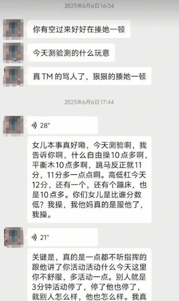 在与晋女士的沟通中,教练们还多次爆粗口,辱骂傅佳丽。有一次,晋女士询问孩子最近的训练情况,施佳竟然破口大骂:“你那孩子就是个废物,怎么教都教不会,天天就知道给我惹麻烦!” 这些不堪入耳的话语,让晋女士心如刀绞,也让大众对教练的素质和师德产生了深深的质疑。