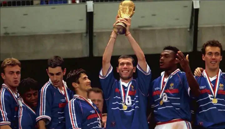 随着普拉蒂尼等人退役,离开国家队,中间法国队有过一段时间的低潮,后面等到齐达内、德尚这一批球员崛起以后,球队是再一次重回正轨,最终在1998年拿到了世界杯冠军,实现了零的突破。