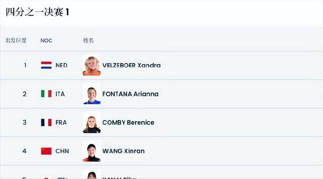 王欣然第一组,同组有意大利名将方塔纳和荷兰选手贝尔塞伯,方塔纳是索契冬奥会500米冠军,本赛季世界杯分站赛两次滑进43秒,王欣然预赛43秒246,小组第一晋级,这是她本赛季个人最好成绩,她唯一一次和方塔纳同场是去年世界杯北京站,当时半程被甩开0.3秒。