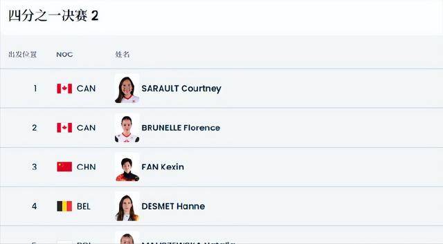 范可新第二组,对手包括比利时德梅和加拿大萨洛特,德梅本赛季500米世界排名第九,预赛成绩43秒078,萨洛特预赛43秒119,范可新预赛42秒992,排在小组第三晋级,这是她第四次参加冬奥会,前三次在该项目拿过一银一铜。