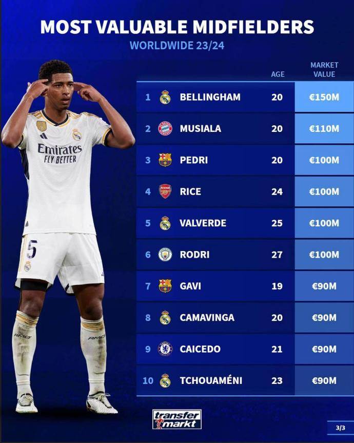 无疑,这份榜单不仅反映了现今足坛中场球员的高价值,更凸显了各大俱乐部对于年轻天才的追求。青春正是黄金时期,一些年轻球员正在以绚烂的姿态闪耀舞台。他们的身价不仅仅是个数字,更是丰富的才华、顶尖的表现以及激动人心的未来。
